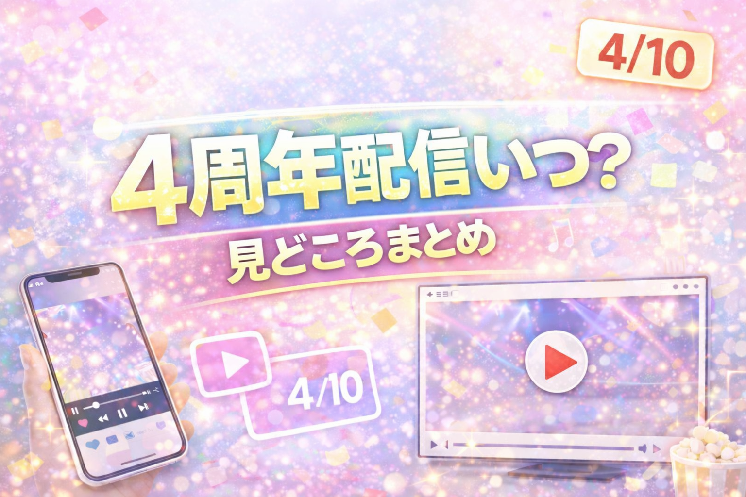 この記事では、4周年記念配信の日時・視聴方法・見どころをまとめています。まだ配信の存在を知らない人も、すでにスタンバイ済みの人も、ぜひチェックしてみてください。
