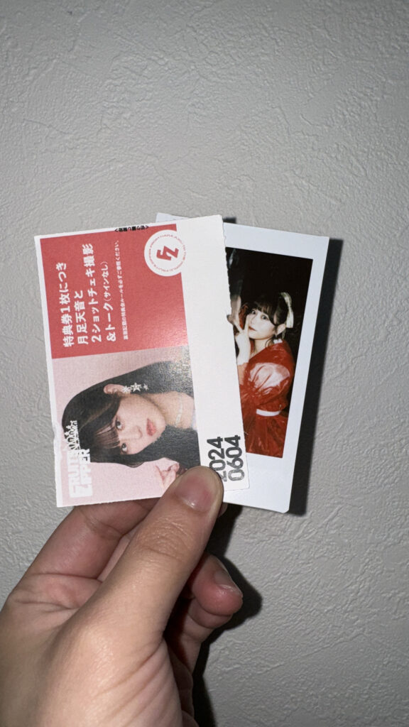 でもこの日、生のステージを見て、特典会であまねきと直接話して(ほぼ話せてないけど)、チェキを撮って。その全部の体験が重なって、「この人のことをもっと応援したい」という気持ちが一気に固まった。