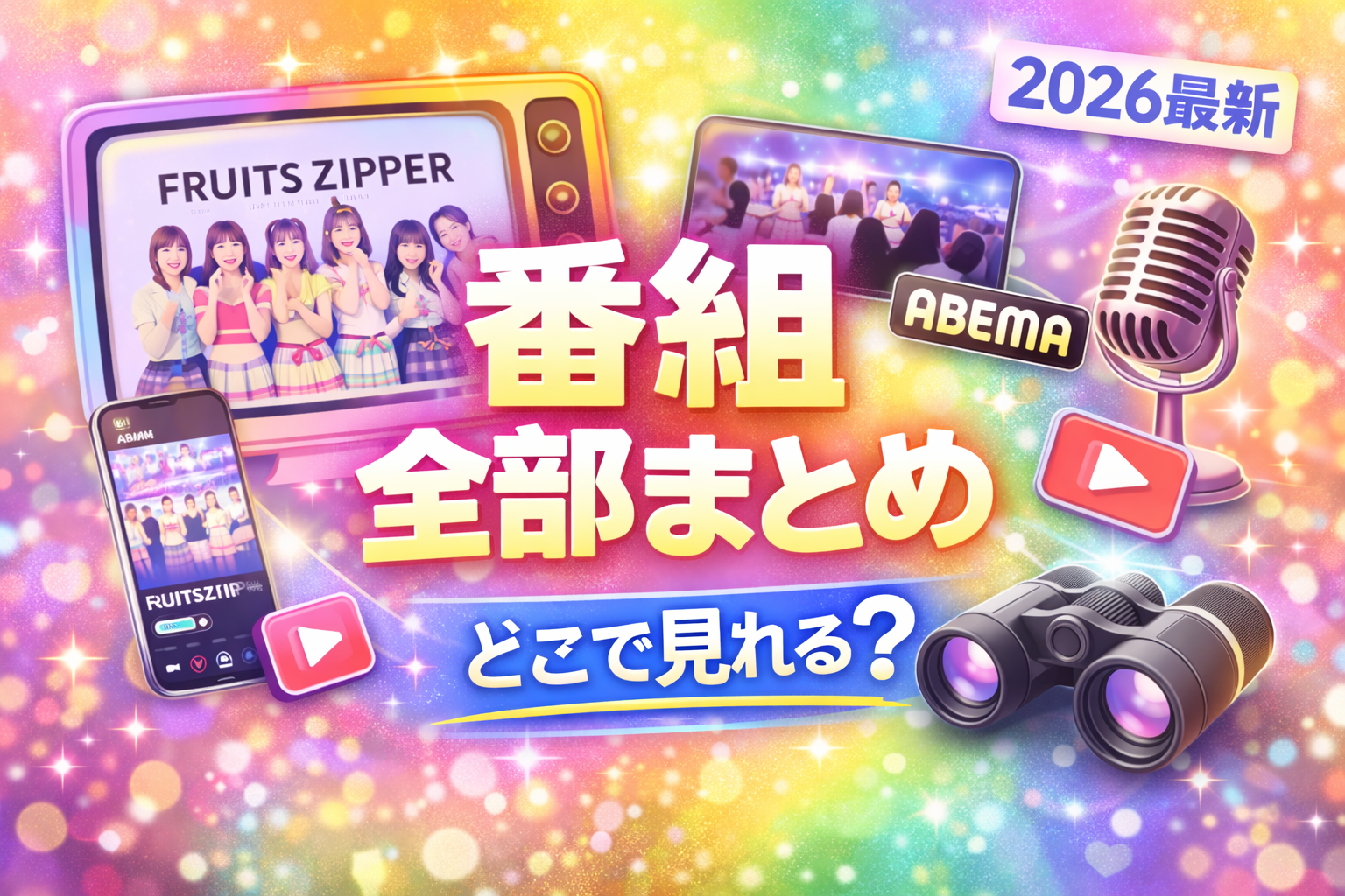 というわけで、この記事では 2026年4月時点で押さえておきたいFRUITS ZIPPERの番組情報を全部まとめました。終了した番組も含めて時系列で整理してるので、ふるっぱーのメディア史をざっと振り返りたい人にも使えると思います。